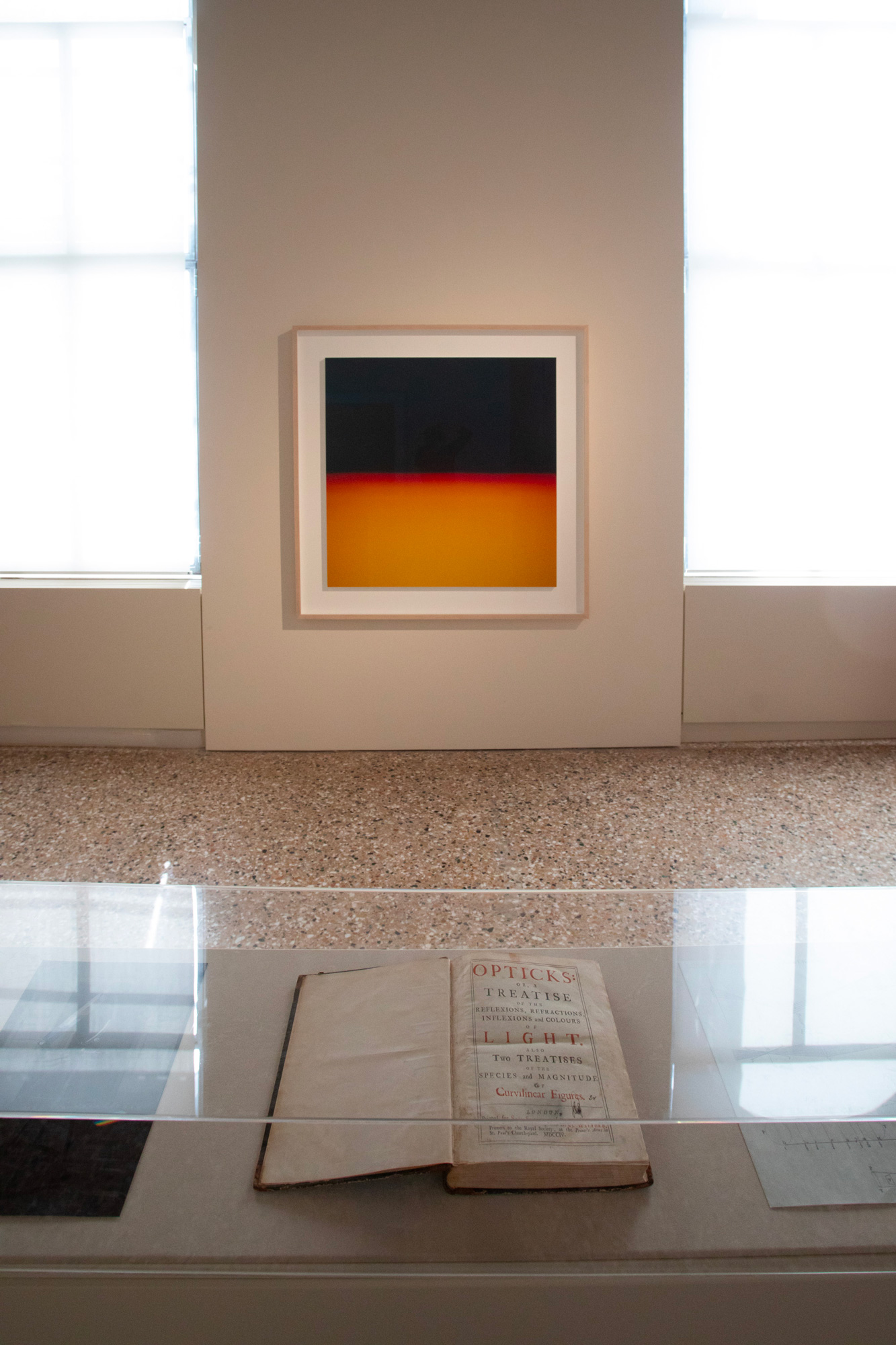 Le nove fotografie della serie Opticks si ispirano alle ricerche di Isaac Newton sulla natura della luce. Sugimoto ha ricreato gli esperimenti dello scienziato utilizzando un prisma che scompone la luce bianca nei suoi colori costitutivi. Nate da un’indagine scientifica, le fotografie che ne derivano presentano sublimi composizioni astratte. Una copia originale dell’opera di Isaac Newton Opticks: or, A Treatise of the Reflexions, Refractions, Inflexions and Colours of Light è in mostra insieme alle fotografie ispirate al libro.