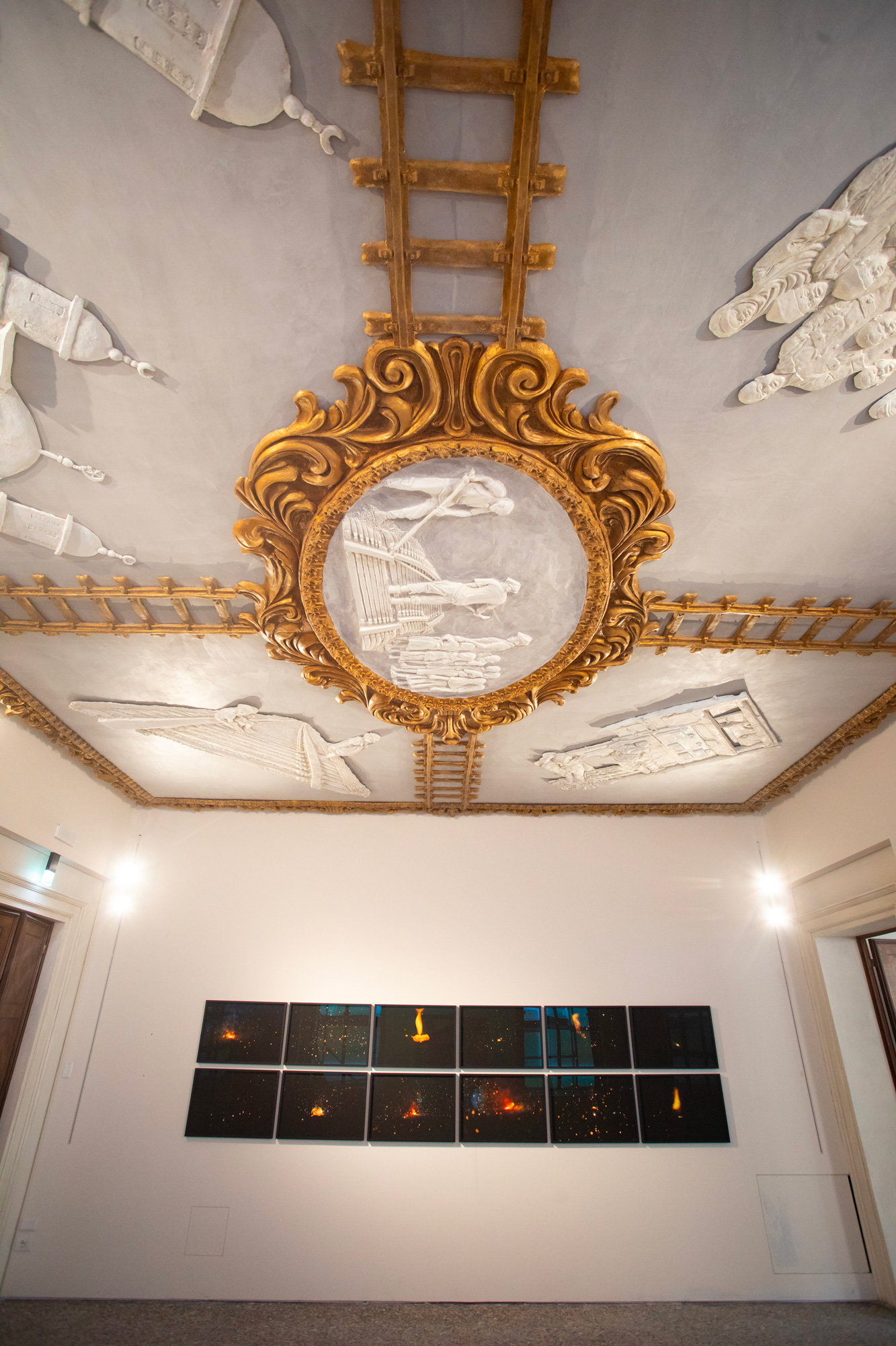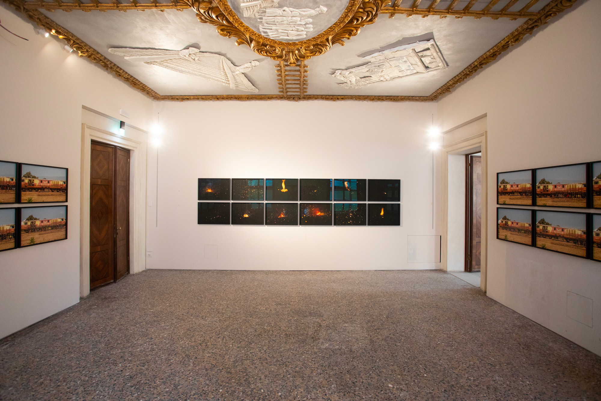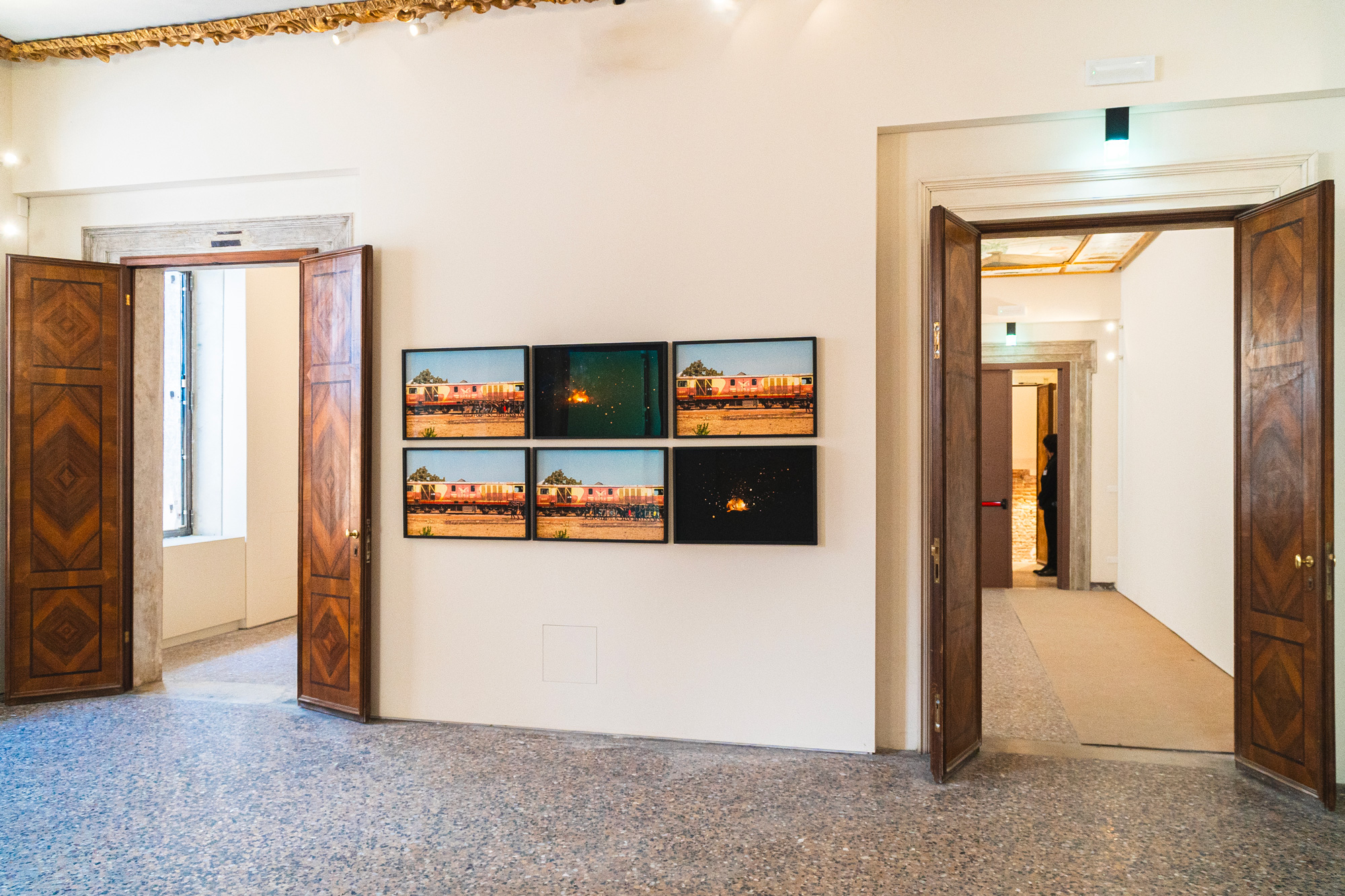 Ibrahim Mahama produces installations that delve into themes of globalization, labor, and the movement of goods, frequently developed in partnership with Ghanaian communities. The works exhibited at Palazzo Diedo focus on the themes of railways and trains, with a particular emphasis on Ghana’s colonial past.