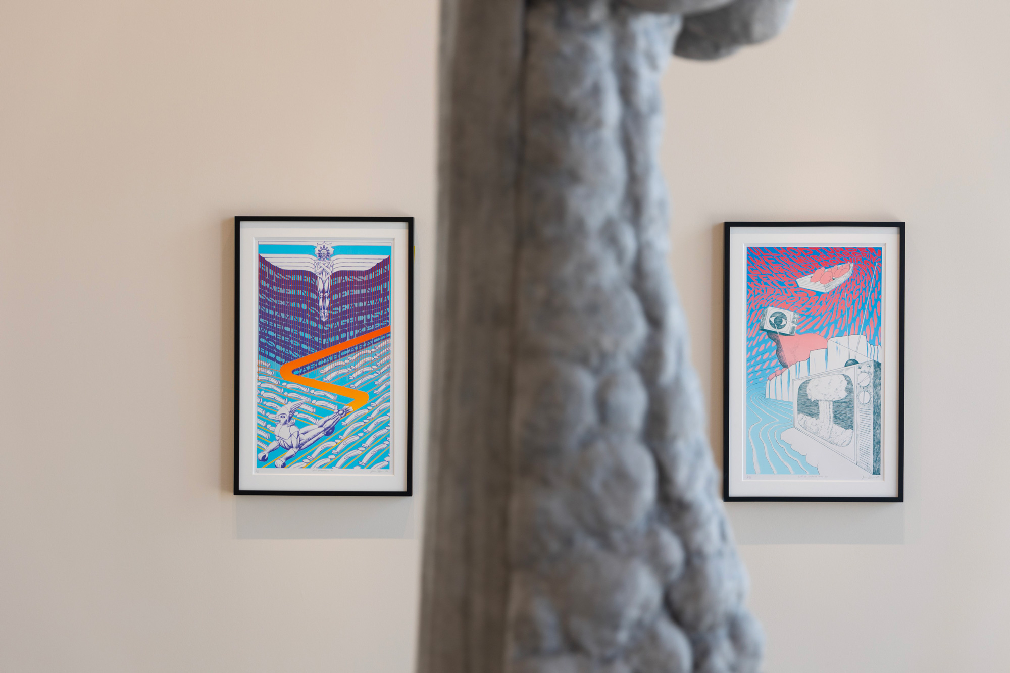 Influenced by epochal psychic and cultural fractures in human history, such as the discovery of psilocybin and the creation of the atomic bomb, Shaw has created The Split Fountain, a dual representation with a magic mushroom on one side and the mushroom cloud produced by the atomic bomb on the other. Alongside the sculpture, Jim presents a series of ten psychedelic prints inspired by the recorded visions and dreams of Carl Jung and McLuhan’s interpretations of Joyce’s thunderwords from Finnegans Wake.